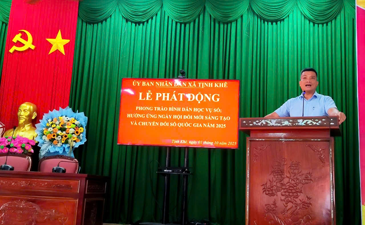 Phát động phong trào: Lãnh đạo UBND xã Tịnh Khê chính thức phát động phong trào "Bình dân học vụ số" và hưởng ứng Ngày Chuyển đổi số quốc gia 2025.