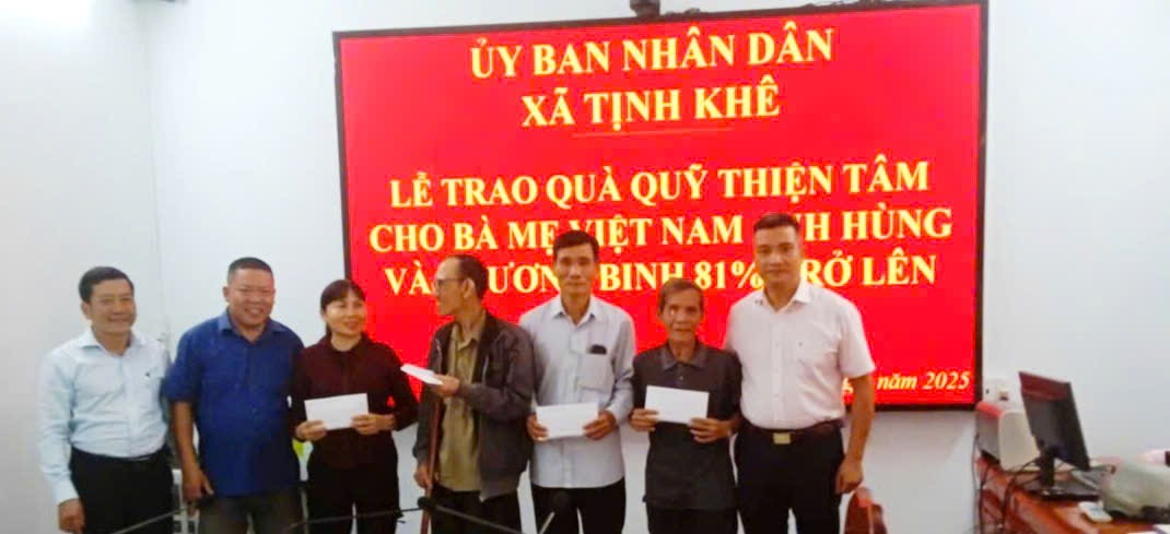 Theo đó, xã Tịnh Khê có 11 đối tượng được nhận quà từ Quỹ Thiện tâm; trong đó có 2 Bà mẹ Việt Nam anh hùng và 9 Thương binh với tỷ lệ thương tật từ 81% trở lên, mỗi suất quà trị giá 20.000.000 đồng. Đây là hoạt động có ý nghĩa thiết thực nhằm tri ân, ghi nhận công lao to lớn của các Mẹ Việt Nam anh hùng và các Thương binh đã cống hiến, hy sinh cho sự nghiệp giải phóng dân tộc, thống nhất đất nước.